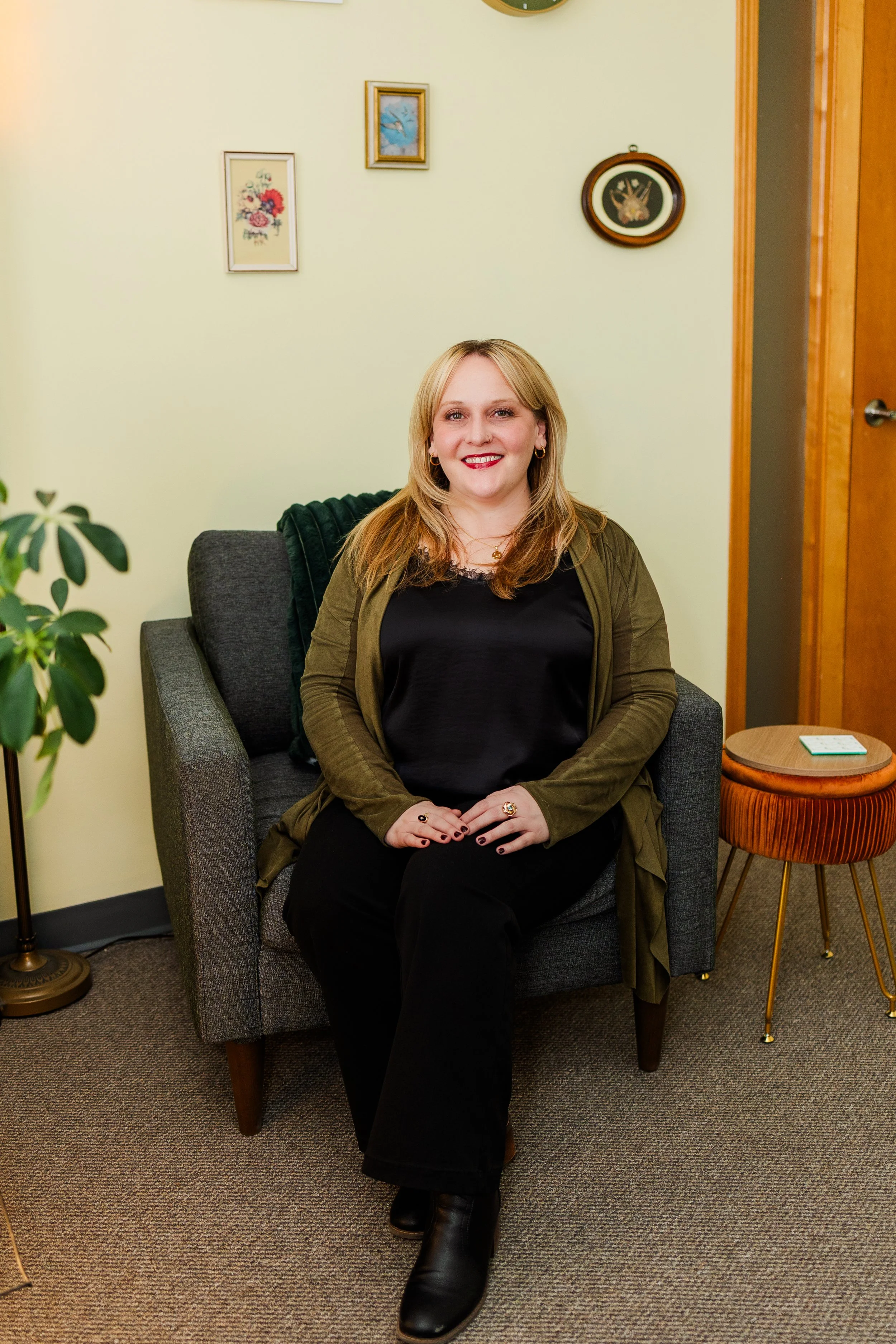She holds a Master of Arts in Professional Counseling from Central Michigan University and has completed advanced training in areas including Acceptance and Commitment Therapy, grief and loss, suicide prevention, and LGBTQIA+ competency and aging. Alicia has also completed specialized training through the Alchemy Community Therapy Center to offer ketamine-assisted therapy as part of an integrative treatment approach.